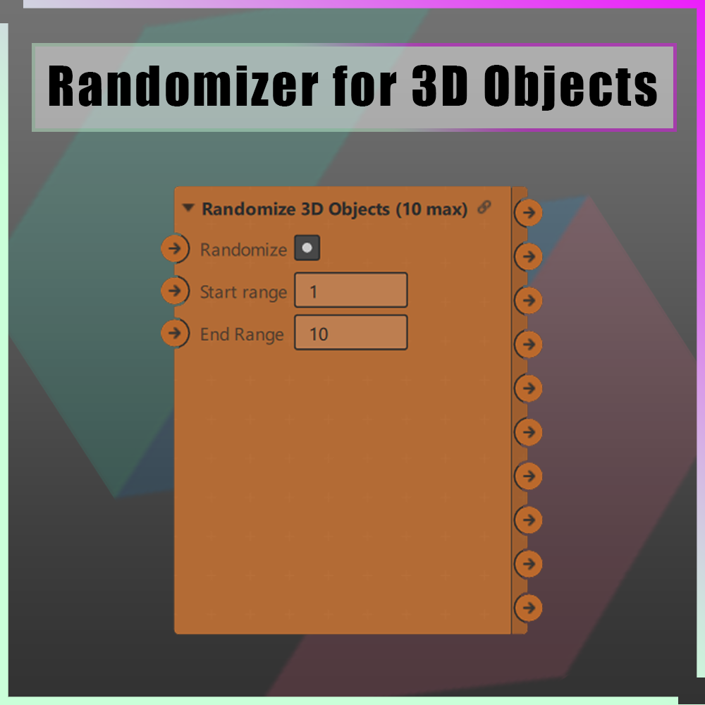 Чтобы начать работать - соедините с номерным выходом вынесенный "Visible" 3D обьекта. Начинать следует от первого выхода и, в зависимости от количества обьектов, менять цифровое значение в End Range. На примере, если у вас три 3D обьекта, то в Start Range у вас должно стоять 1, а в End Range 3.